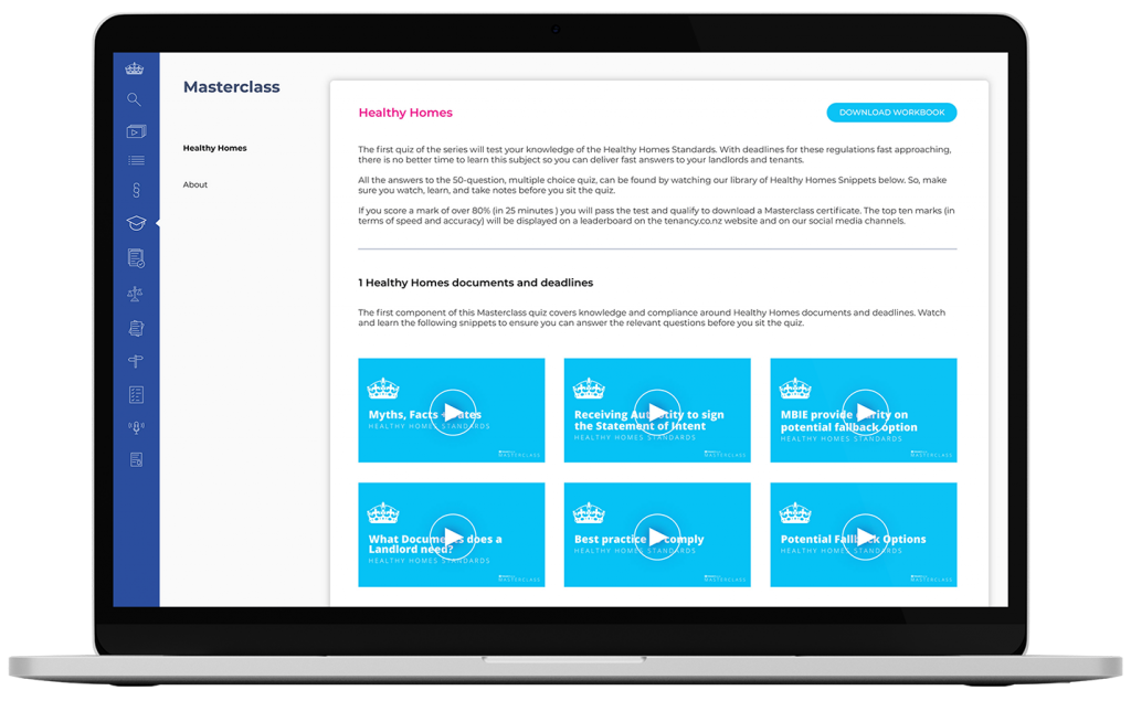 Our Masterclass tab is an online training platform. This gives property managers the ability to get trained, get tested and get a certificate to show you know your stuff.
