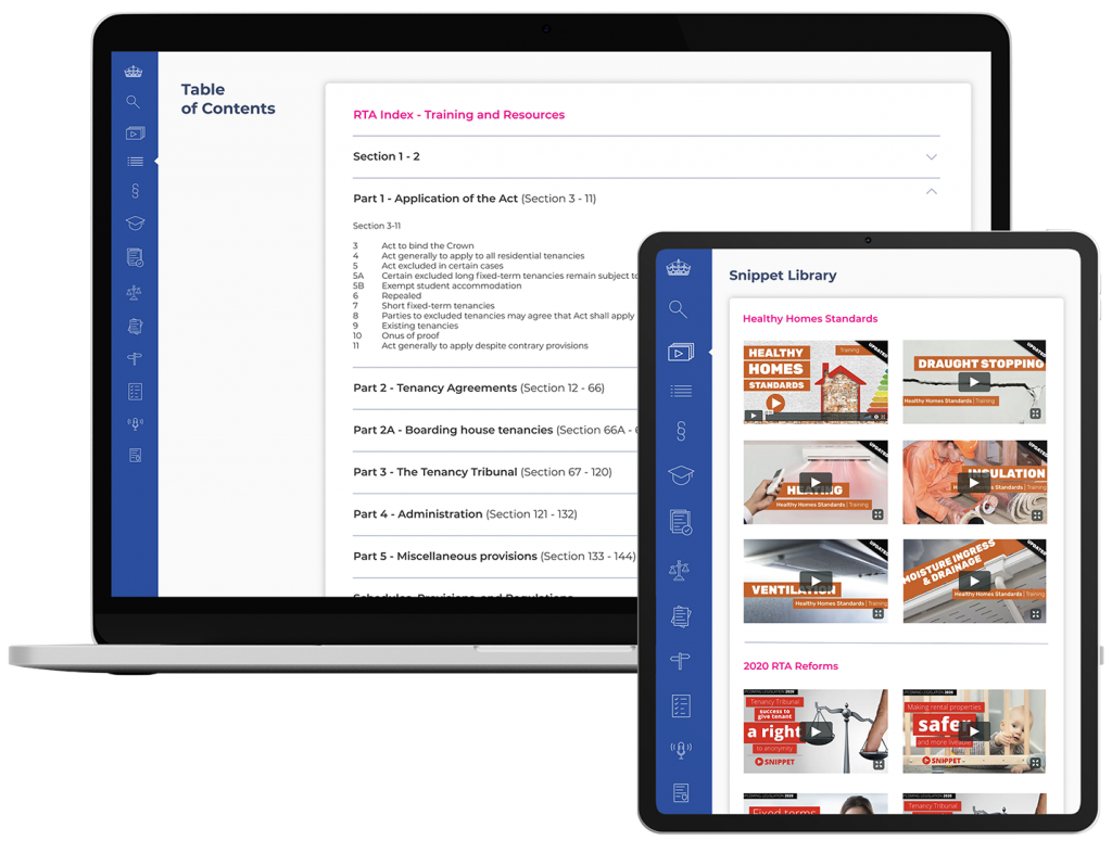 Total Tenancy is the property manager’s handbook. You’ll get full-time access to resources, guides, and training to help you and your office stay compliant with current tenancy legislation. It is our electronic version of our in-house residential tenancy expert, Scotney Williams L.L.B